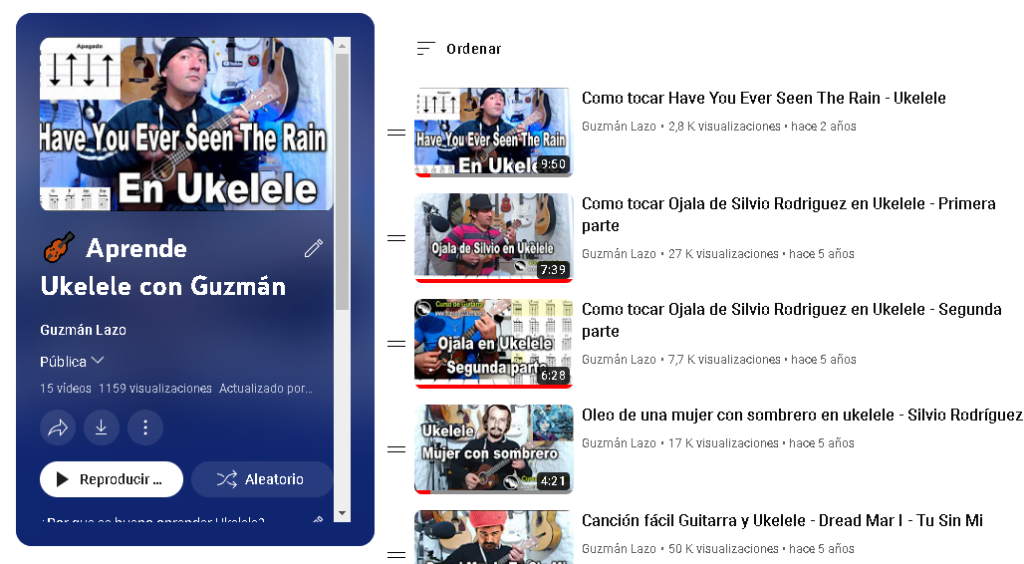 Tambien en la lista de reproducción de el canal de YouTube hay canciones en ukelele que no son para niños