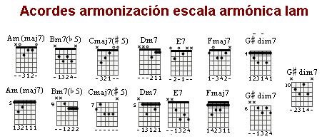 Recuerda que puedes usar los grados de tónica de la escala menor natural, con los acordes de la escala armónica menor.