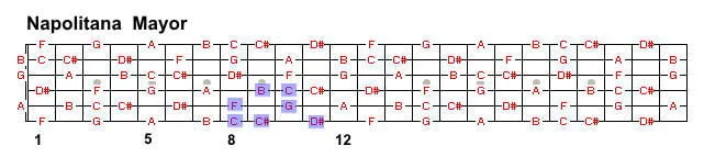 Escala Napolitana si bien su nombre alega a Italia, su sonido no es tan Italiano, en el caso de la mayor T – 2m – 2+ – 4 – 5 – 6M – 7M en la menor T – 2m – 2+ – 4 – 5 – 5+ – 7M